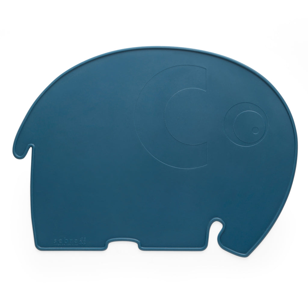 Platzdeckchen aus Silikon in der Form des klassischen Elefanten Fanto von Sebra – eine ideale Speiseunterlage während aller Mahlzeiten, hier in der Farbe Nordic Blue.