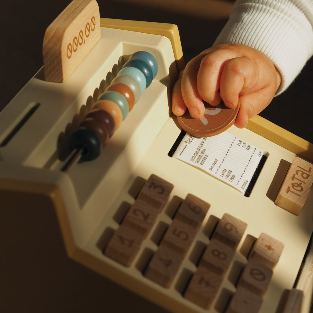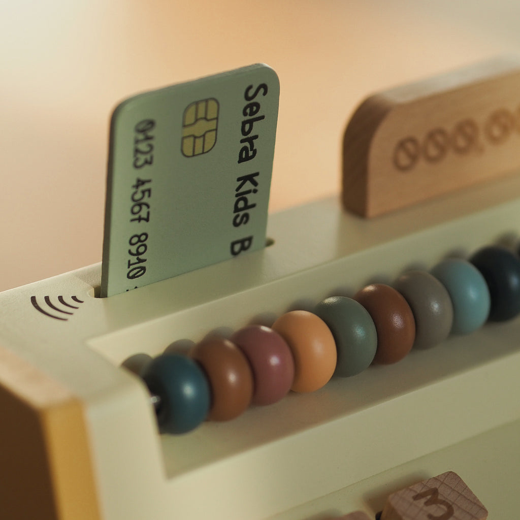 Der Sebra Kasseapparat hilft Ihrem Kind, das Spiel realistisch zu gestalten, wenn es Spielnahrung, Teddybären und selbstgemalte Bilder verkauft. Den Bezahlvorgang zu spielen und die Funktion sowie den Wert von Geld zu verstehen, ist eine wichtige Erfahrung.