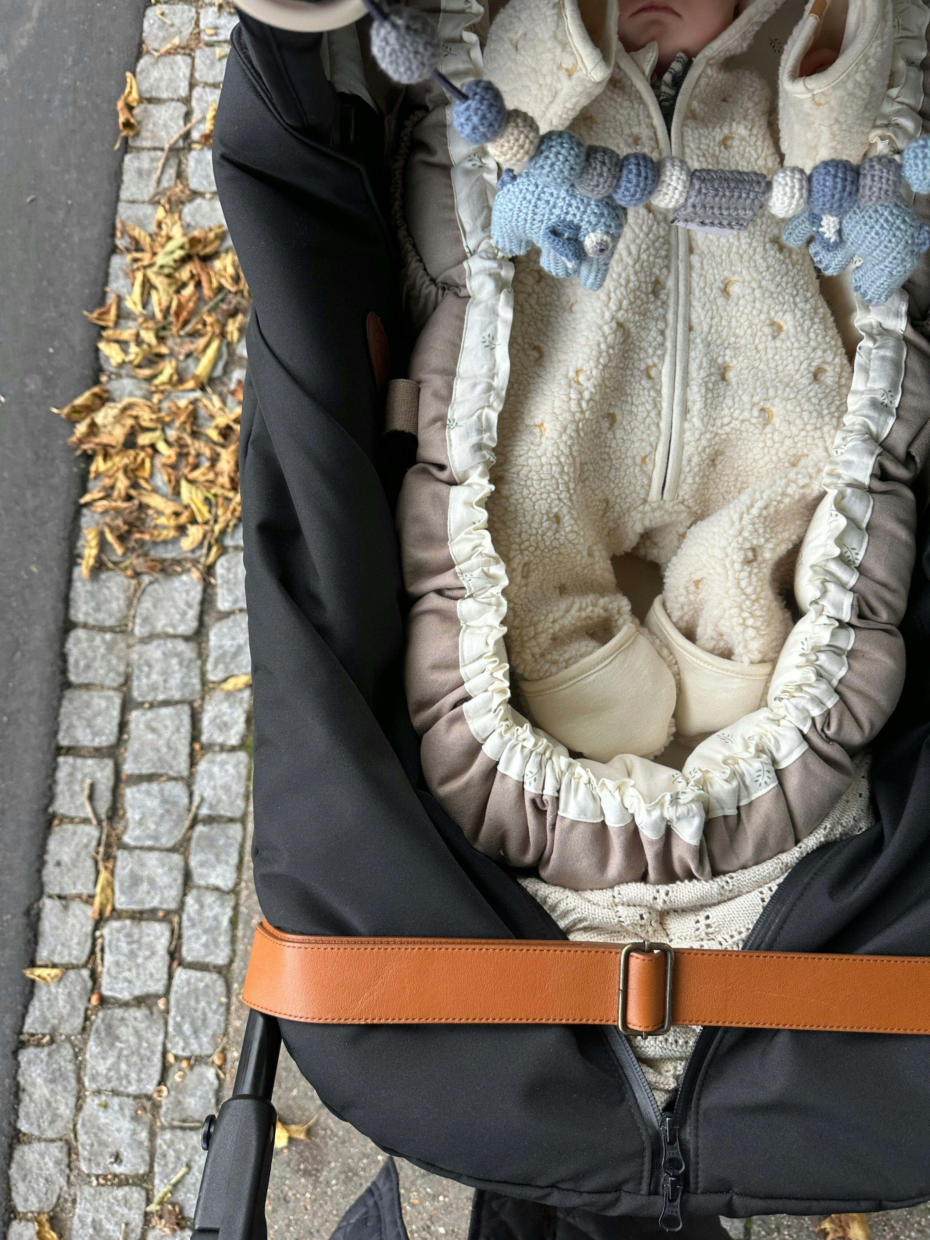 Vi brugte den allerede på sygehuset da han kom til verden. Nu er min baby næsten 2 måneder og det er hans favoritsted at være. Den er tryg for ham pga de gode sider og efterhånden som han er vokset har vi blot løsnet den lidt så han har mere plads. Den passer perfekt ned i barnevognen og efterlader lidt plads i fodenden til at opbevare lidt ekstra på turen. Kæmpe anbefaling!